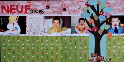 Voici la page que j'ai terminé ce matin même.C'est une page que j'ai fait pour le défi sketch de chez Scrapbook centrale. Ça été un peu long mais je devais attendre d'avoir assez de photos pour ce tte page double.
